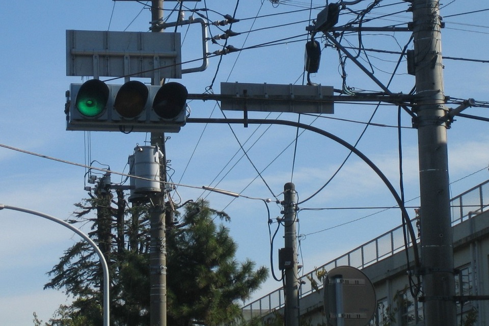 神奈川県などでは、道路に合わせて角度の調整ができる角型灯器も設置されていました