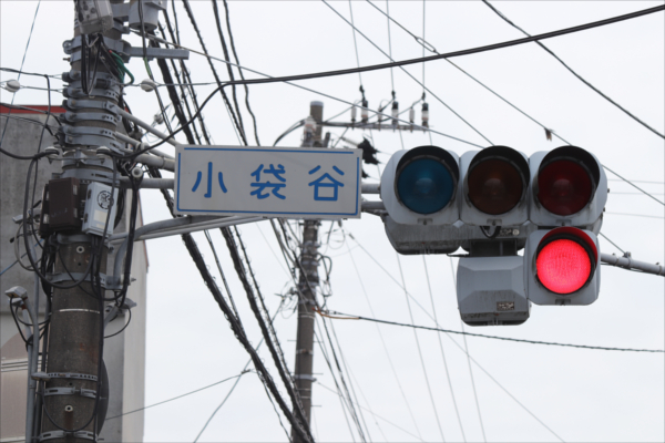 おまけの1灯は全国で十数か所程発見されていますが、1基に黄1灯と赤1灯の両方があるのはここのみです!! 交差点の手前に踏切があるためこのようになっていると考えられます。線路と並行の道路が青のときは下の赤が点滅し、黄色になると一度上の赤が点灯し、そのあと下の黄色が点滅し、上黄点灯、上赤点灯、下赤点滅… の繰り返しです。 小袋谷