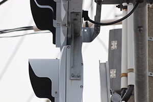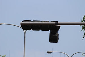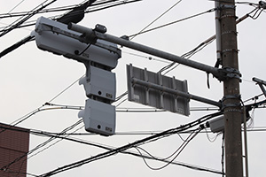 左方向に道が2つあり、矢印を普通に設置すると直進と間違えられる可能性があるため、矢印が左にずれて設置されています。矢印は8:00-20:00にしか点灯しません。