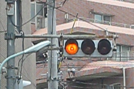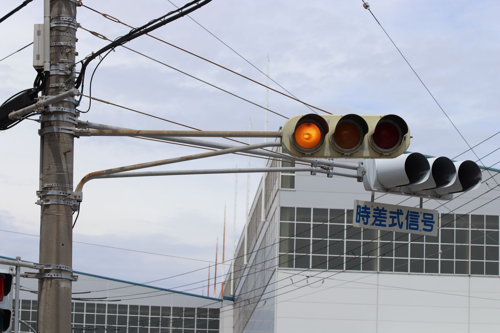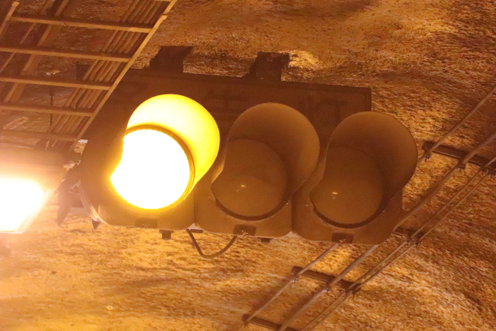 車両に注意を促すためにYYR配列の信号機が設置されていました。撮影時は既に左黄を使わない制御になっていました。現在は電材薄型LED蓋YRに更新されています
