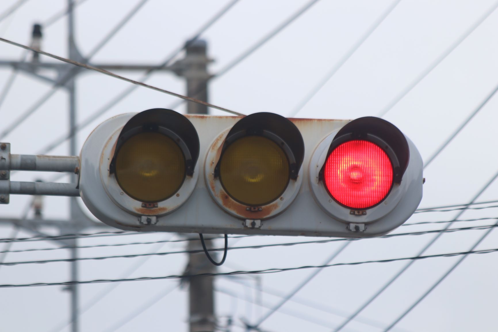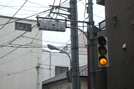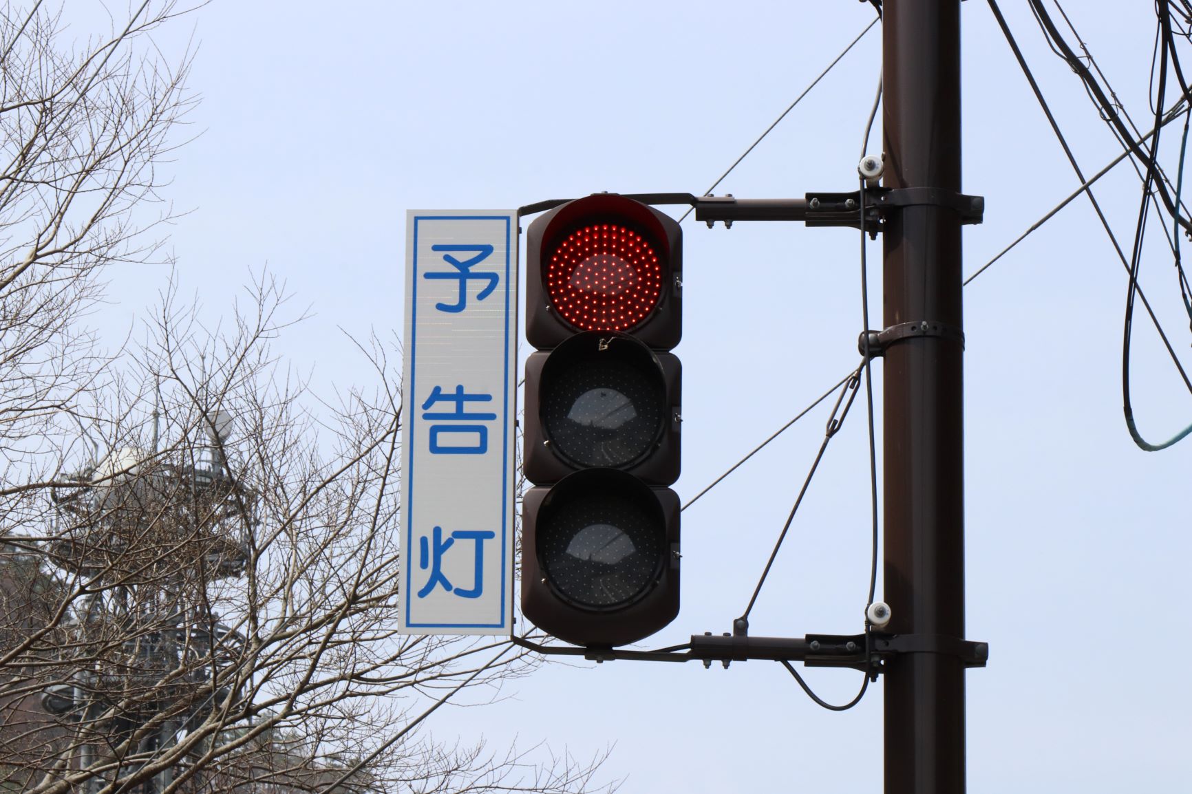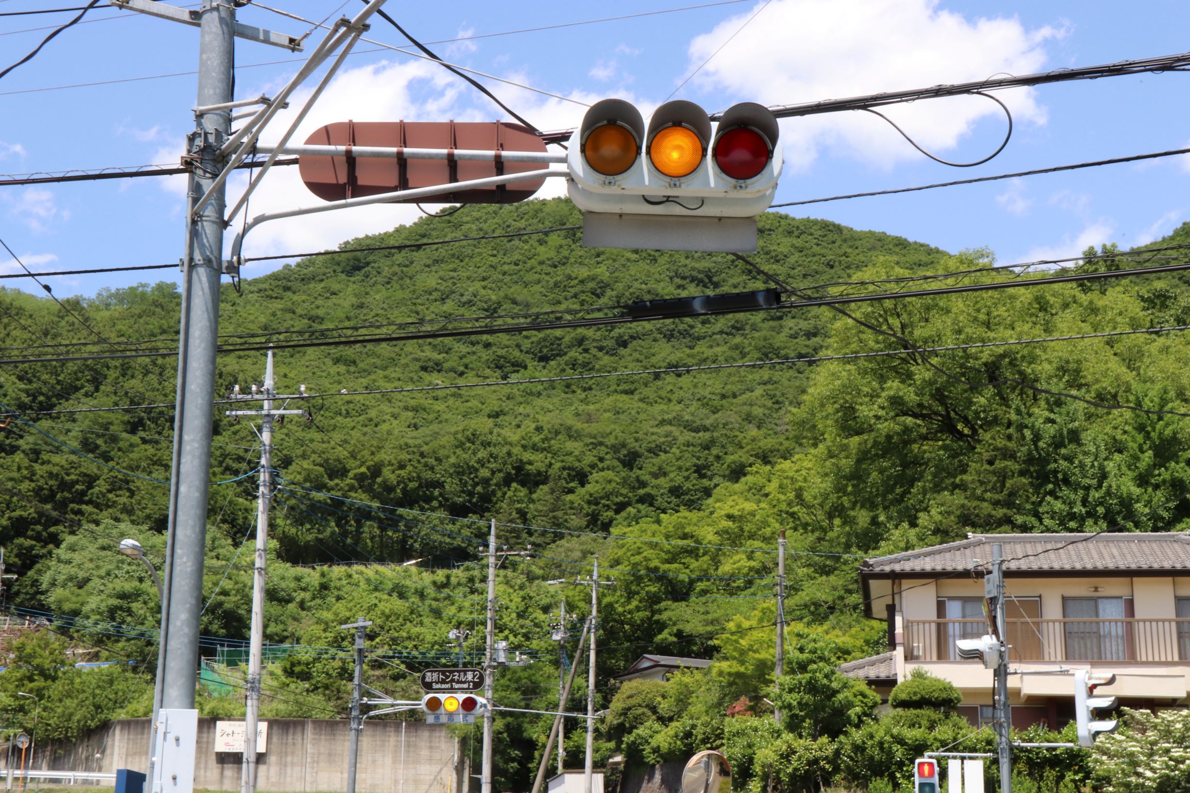 車両に注意を促すためにYYR配列の信号機が設置されていました。撮影時は既に左黄を使わない制御になっていました。現在は電材薄型LED蓋YRに更新されています